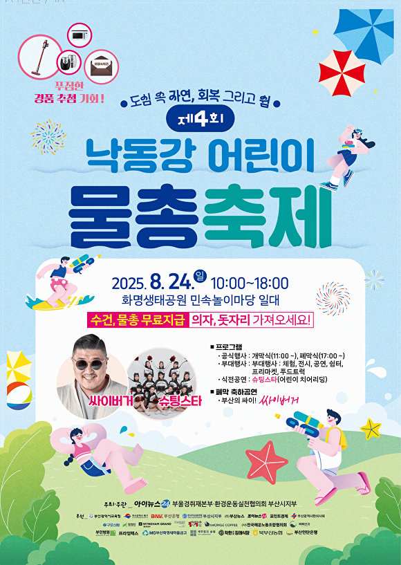 [아이뉴스24 박채오 기자] 올해로 4회째를 맞는 '낙동강 어린이 물총축제'가 오는 24일 부산시 북구 화명생태공원 민속놀이마당에서 열린다.