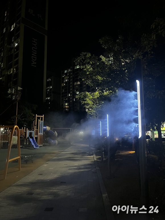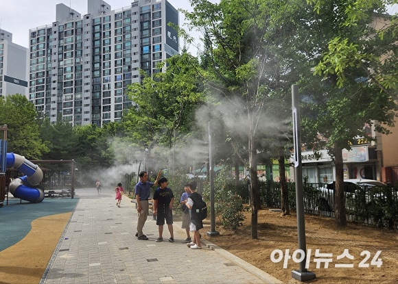 쿨링포그는 어린이 놀이시설 주변에 설치되어 오전부터 저녁까지 어린이 활동 시간에 맞춰 가동된다.