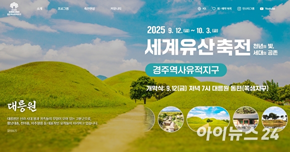 [아이뉴스24 이진우 기자] 경북 경주시는 오는 9월 12일 개막하는 '2025 세계유산축전 경주역사유적지구'를 앞두고 지난 22일 공식 홈페이지를 정식 오픈하며 관람객 유치에 본격 나섰다고 24일 밝혔다.