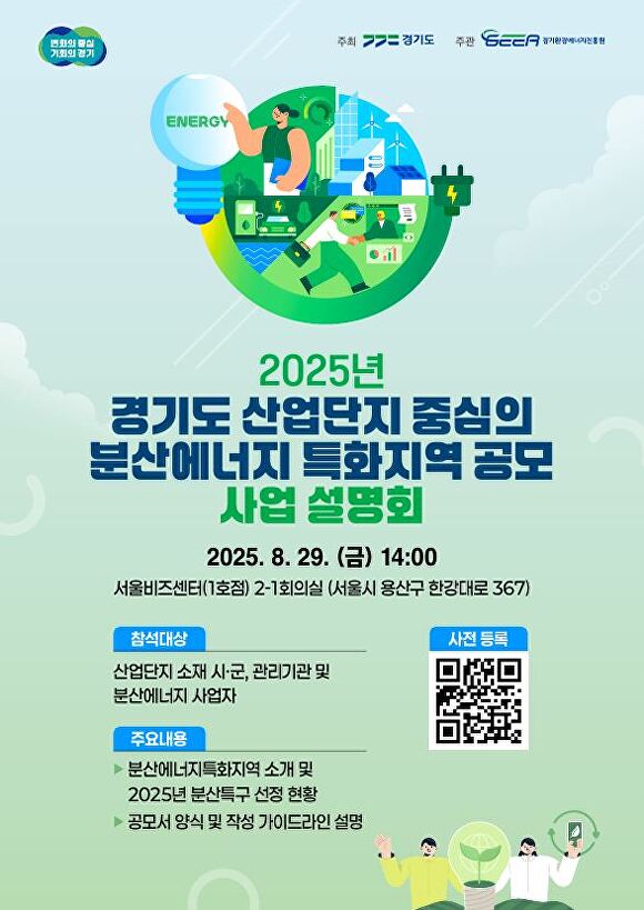 김연지 에너지산업과장은 "도는 2023년부터 ‘산업단지 RE100’ 정책을 선도해 최근 2년 사이에 도내 산업단지 지붕 태양광의 60%가 설치될 정도로 재생에너지 보급이 빠르게 확산됐다"며 "이제는 산업단지가 분산에너지의 혁신 거점이 되도록 분산에너지 산업단지 모델 발굴에 앞장서겠다"고 말했다.