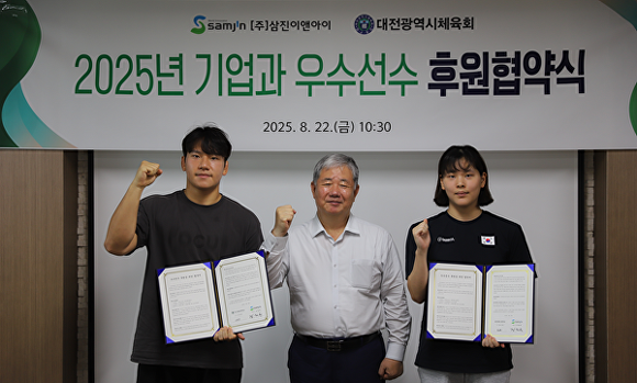 [아이뉴스24 김천겸 기자] 대전 소재 기업 삼진이앤아이가 대전 출신 유망주 선수들을 후원하며 지역 체육 발전과 차세대 스포츠 스타 육성에 나섰다.