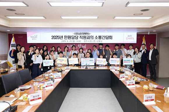 [아이뉴스24 이윤 기자] 경기도 양주시는 오늘 시청 상황실에서 민원담당 직원들과의 소통 간담회를 열고 현장의 목소리에 귀 기울였다. 본청과 읍·면·동 행정복지센터에서 근무하는 25명의 민원담당 직원들이 참석한 간담회는 형식적인 절차를 걷어내고 시장과 직원들이 자유롭게 대화를 나누는 자리였다.