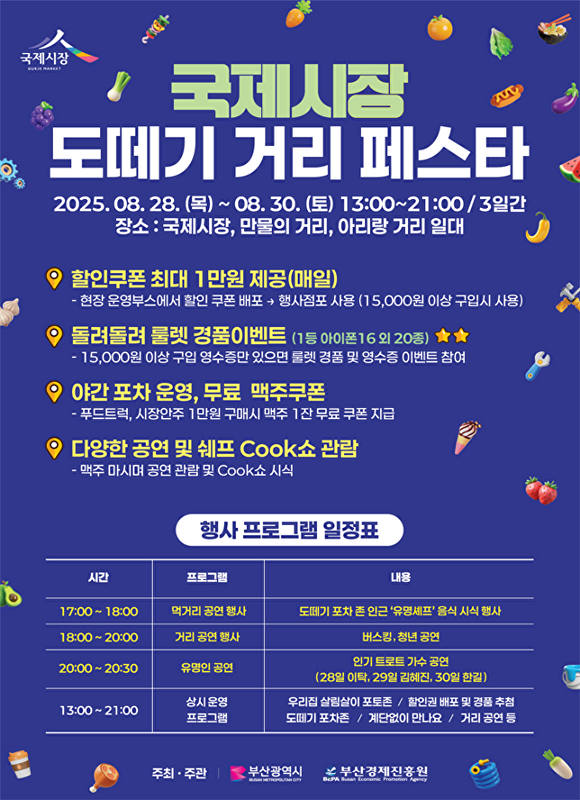 [아이뉴스24 정예진 기자] 부산광역시가 오는 28일부터 30일까지 ‘국제시장 도떼기 거리 페스타’를 국제시장과 만물의 거리, 아리랑 거리 일대에서 개최한다.