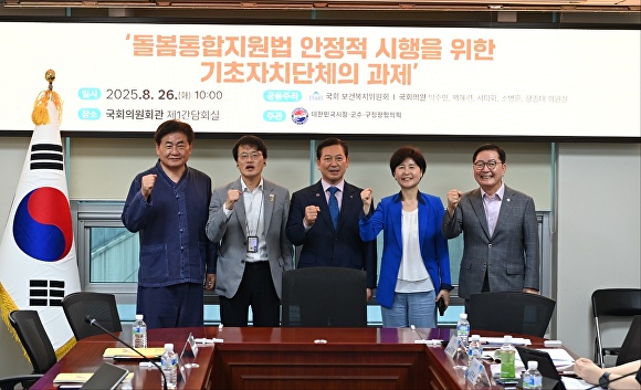 [아이뉴스24 이창재 기자] 대한민국시장・군수・구청장협의회(대표회장 조재구 대구 남구청장)는 26일 국회의원회관에서 ‘돌봄통합지원법 안정적 시행을 위한 기초자치단체의 과제’를 주제로 국회토론회를 개최했다.