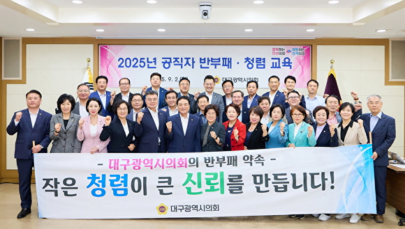 [아이뉴스24 이창재 기자] 대구시의회(의장 이만규)는 2일 오후 시의회 3층 회의실에서 ‘2025년 반부패 청렴교육’을 실시했다.