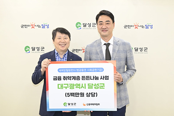 달성군과 신복위 대구·경북지역본부는 2023년 2월 ‘달성 새희망 금융복지지원 업무협약’을 체결한 후 채무 감면·조정 49건, 단순 채무 상담 176건, 타 기관 복지지원 연계 25건 등 총 250건의 금융복지지원을 진행한 바 있다.