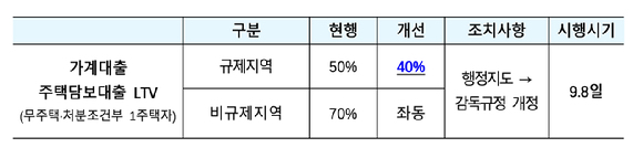 내일(8일)부터 규제지역 주담대 LTV 50% → 40%