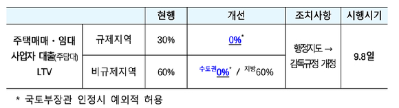 수도권·규제 지역 내 매매·임대 사업자 주담대 제한