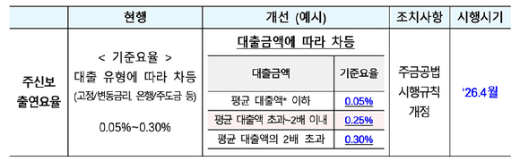 주택금융신용보증기금(주신보) 출연요율도 대출 금액별로 차등화했다. 대출 규모가 클수록 더 높은 출연요율을 부과해 금융회사의 고액 주담대 취급 유인을 줄이려는 의도다.