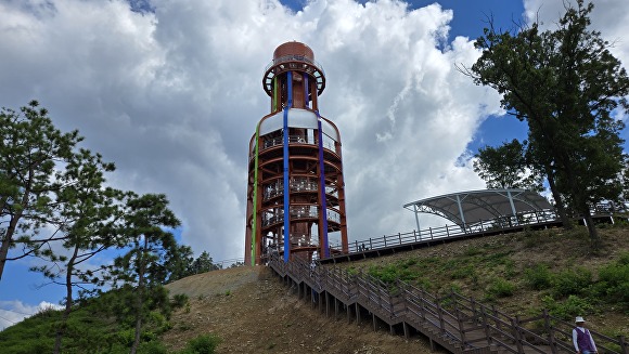 군 관계자는 “와인전망대에는 15인승 엘리베이터가 설치돼 43m 높이의 유리판 전망대(스카이워크)까지 단숨에 오를 수 있다”며 “회오리 모양의 계단과 경사로를 통해서도 스카이워크에 접근할 수 있다”고 소개했다.