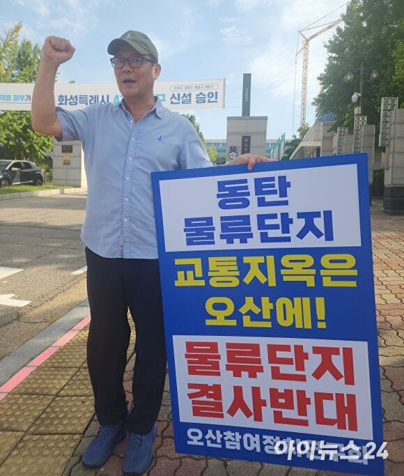 [아이뉴스24 김장중 기자] 조재훈 전 경기도의원이 동탄2 물류센터 건립 반대 1인 시위에 나선 지 벌써 이 주일째 접어들고 있다.