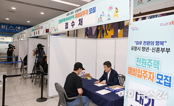 [아이뉴스24 이진우 기자] 경북 포항시는 청년과 신혼부부 주거 안정을 위한 '천원주택' 1차 모집 접수를 16일 시청사 2층에서 시작했다.