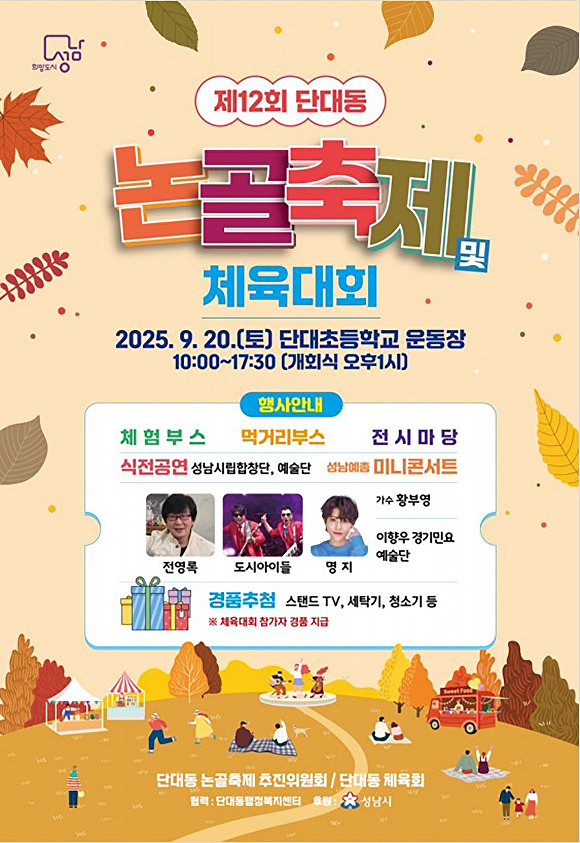 [아이뉴스24 정재수 기자] 경기도 성남시는 ‘제12회 단대동 논골축제’가 오는 20일 단대초등학교 운동장에서 열린다고 17일 밝혔다.