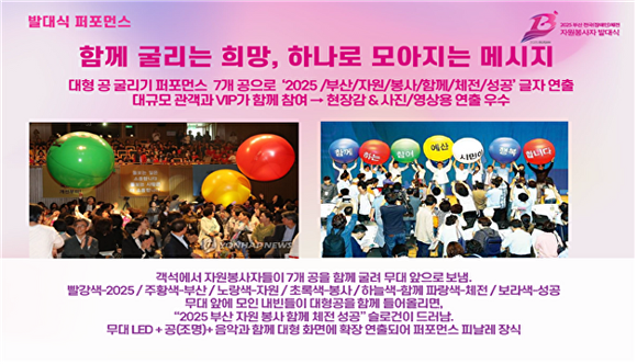 이번 발대식에는 부산 전역에서 선발된 자원봉사자 2500여명을 비롯해 박형준 부산광역시장과 안성민 부산광역시의회 의장, 김석준 부산광역시교육감 등이 참석한다.