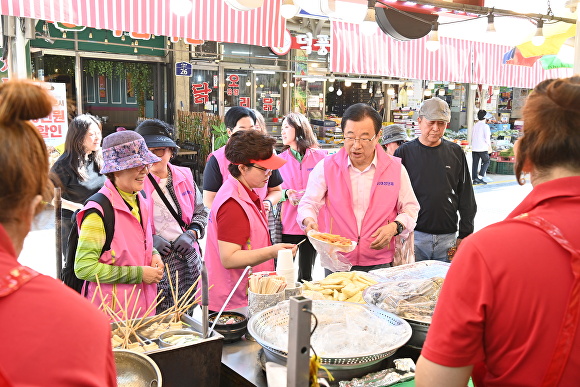 이날 이 시장은 상인들과 인사를 나누며 제철 과일과 나물, 한과 등을 직접 고르고 장바구니에 담았다. 시장 곳곳을 걸으며 상인들의 어려움을 묻고 “명절 대목이 활기를 되찾을 수 있도록 시민들의 발걸음이 이어지길 바란다”며 격려도 건넸다.
