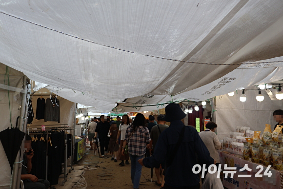참가 업체들의 고충도 적지 않았다. 황톳길 위에 조성된 부스는 바닥 배수 시설이 부족해 물 빠짐이 원활하지 않았고, 천막에는 빗물이 고여 물건이 젖는 등 침수 피해까지 발생했다.
