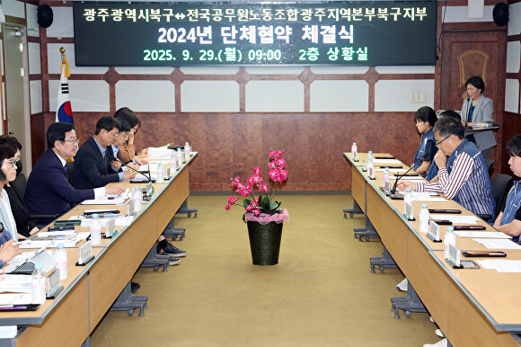 [아이뉴스24 윤준호 기자] 광주시 북구는 29일 전국공무원노동조합 광주지역본부 북구지부와 단체협약을 체결했다고 밝혔다.
