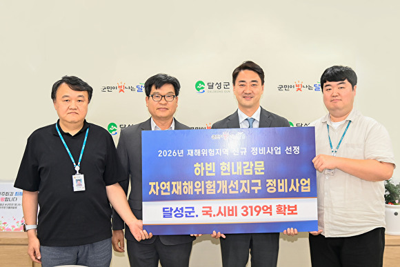 [아이뉴스24 이창재 기자] 대구 달성군(군수 최재훈)은 행정안전부가 주관하는 ‘2026년 자연재해위험개선지구 정비사업 신규사업’에 하빈 현내감문지구가 최종 선정돼 국·시비 319억원을 확보했다고 1일 밝혔다.