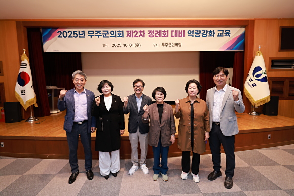 [아이뉴스24 박종수 기자] 전북자치도 무주군의회(의장 오광석)는 1일 무주군민의집에서 군의회 의원과 직원들을 대상으로 제2차 정례회 대비 역량강화 교육을 진행했다.