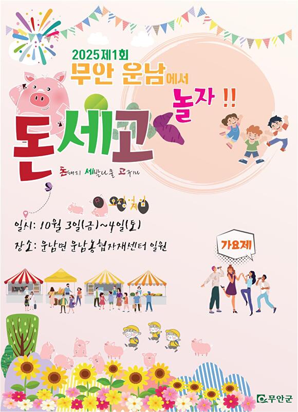 [아이뉴스24 김상진 기자] 전남 무안군 운남면 축제추진위원회는 ‘2025 운남에서 돈·세·고 놀자 축제’를 오는 3-4일 운남면 소재지 일원(운남농협자재센터)에서 개최한다.