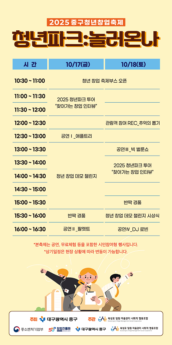 모든 프로그램은 무료로 운영돼, 청년창업가뿐 아니라 중구 주민 누구나 함께 즐길 수 있는 열린 축제로 진행될 예정이다.
