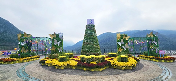 여기에 더해 ‘사과마차’, ‘돌고래’, ‘뿔사슴’, ‘하프’, ‘열목어’, ‘백조’, ‘큰아치’ 등 국화 작품 12점과 ‘물방울’, ‘열기구’ 등 조형물 6점을 설치해 단양의 대표 포토존으로 자리매김하고 있다.