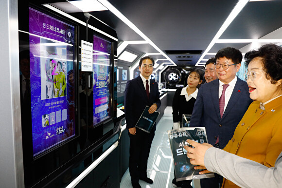 ‘AI반도체 드림 버스’ 내부는 실제 반도체 생산 현장을 재현한 체험 공간으로 구성됐으며 반도체 원리와 생산공정 과정, 반도체 네 컷, 반도체 진로 유형 검사 등 다양한 콘텐츠가 탑재돼 있다.
