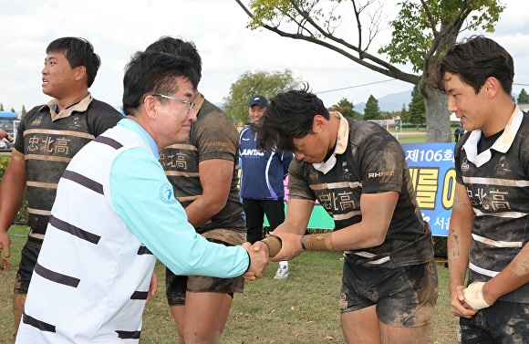 이날 충북고 럭비부는 고등 럭비 강호인 부산체고를 만나, 전후반 대등한 경기로 12대 12 동점으로 마치고, 킥앤런에서 5대 4로 이겼다.
