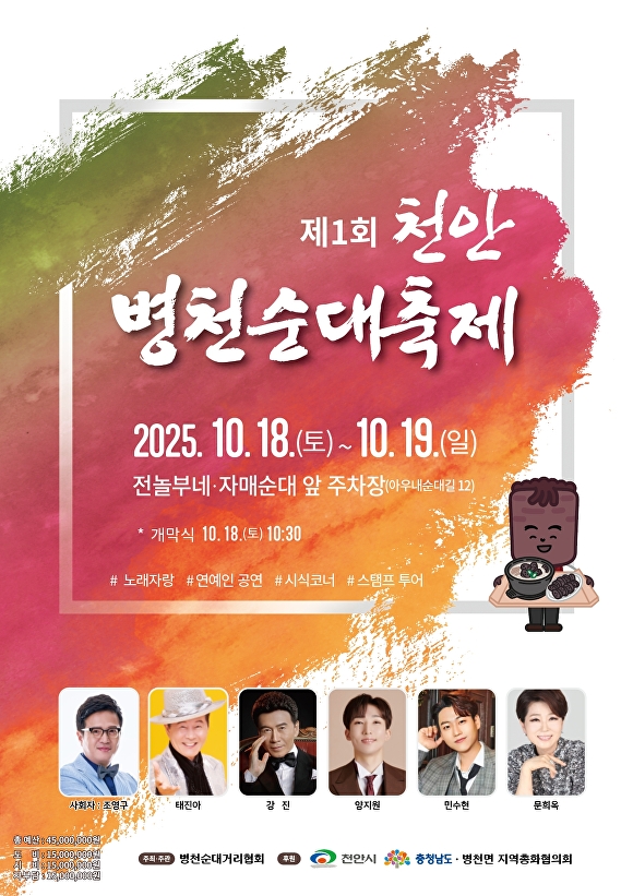 전놀부네·자매순대 일원에서 열리는 축제에서는 병천순대 무료 시식과 순대볶음·순대빵 판매, 독립운동 의상체험 등 다양한 체험 프로그램이 운영된다.