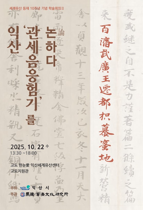 학술회의는 백제의 익산천도 내용을 담은 유일한 사료인 일본 교토 청련원(靑蓮院) 소장 '관세음응험기(觀世音應驗記)'를 중심으로 이뤄진다. 관세음응험기의 사료적 가치와 진정성을 학술적으로 검증하고, 백제왕도 익산의 역사적 위상을 조명한다.