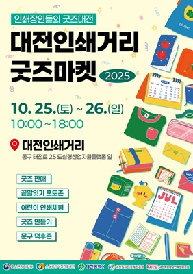 [아이뉴스24 김천겸 기자] 대전일자리경제진흥원 인쇄소공인특화지원센터는 오는 25~26일 대전 동구 도심형산업지원플랫폼 앞 인쇄거리 일원에서 ‘2025 대전인쇄거리 굿즈마켓’을 개최한다.
