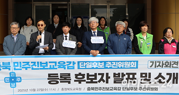충북 민주진보교육감 단일후보 추진위원회는 22일 충북교육청 현관 앞에서 기자회견을 열고 이같이 밝혔다.