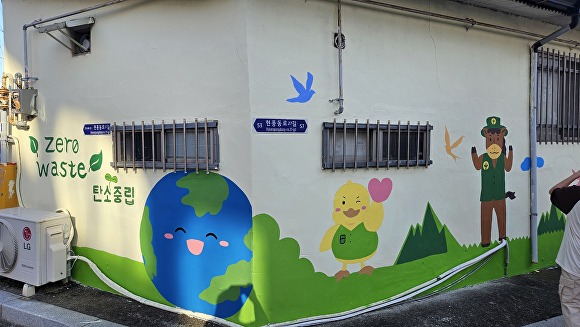 이날 행사에는 현풍읍 새마을회를 비롯해 지역아동센터 어린이, 계명대 ‘사랑그리기’ 동아리 대학생, 마을 어르신 등 30여 명이 참여해 벽면을 탄소중립을 상징하는 문구와 그림으로 채웠다. 완성된 벽화는 주민들에게 환경보호와 일상 속 실천의 중요성을 자연스럽게 전하는 의미 있는 공간으로 재탄생했다.