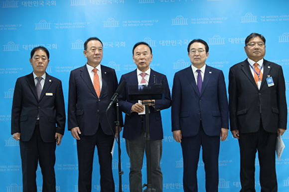 국민의힘 박덕흠 의원(충북 보은·옥천·영동·괴산)은 23일 엄태영 의원(충북 제천·단양), 황규철 옥천군수, 강성규 영동부군수, 장우성 괴산부군수와 함께 국회에서 기자회견을 열고 “이재명 정부가 추진하는 농어촌 기본소득 시범 사업에서 충북도가 광역시를 제외한 8개 도 가운데 유일하게 한 곳도 선정되지 못했다. 충북도민들이 ‘이재명 정부가 충북을 홀대하는 건 아닌 지 강한 의구심을 갖고 있다’는 사실을 알리기 위해 이 자리에 섰다”고 밝혔다.