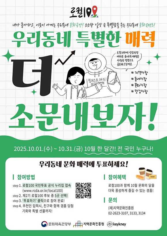 최종 선정은 온라인 국민투표와 전문가 대면 평가를 통해 이뤄지며, 투표는 오는 31일까지 ‘로컬 100 투표 누리집에서 누구나 참여할 수 있다.