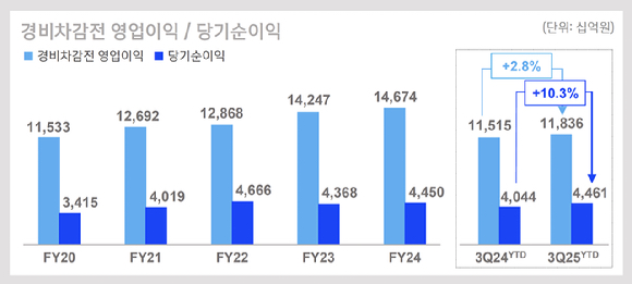 3분기 누적 당기순익은 4조 4609억원으로 전년 동기 대비 10.3% 증가했다.