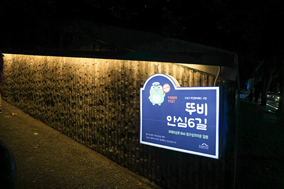 ‘뚜비가 지키는 안심6길’은 야간 조도가 낮아 이용이 불편했던 범어3동 청구성조타운 뒤 골목길에 발광 LED 경관조명을 설치해 밝고 안전한 보행환경을 조성한 사업이다. 이번 확대 조성으로 주민들이 안심하고 이용할 수 있는 생활안전 공간으로 자리잡았다.
