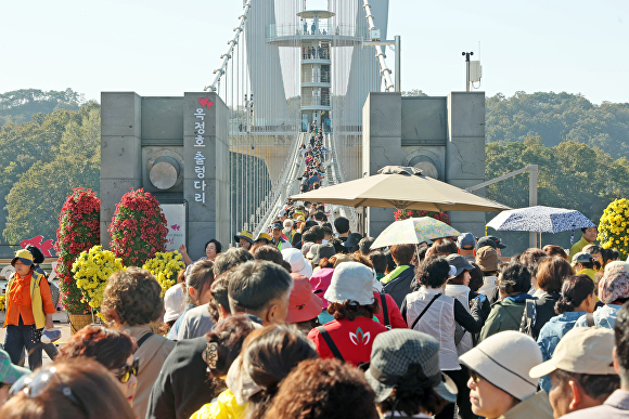 옥정호 출렁다리를 찾은 관광인파 [사진=임실군 ]