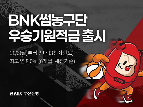 [아이뉴스24 박채오 기자] BNK부산은행은 BNK썸 여자프로농구단 인수를 기념해 팬들과 함께 팀의 우승을 응원하는 정기적금 상품인 'BNK썸농구단 우승기원적금'을 출시한다고 3일 밝혔다.