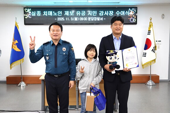 이에 분당경찰서는 김 씨에게 감사장을 수여하고 치매 어르신에게는 분당보건소에 의뢰해 ‘스마트 태그’를 지급할 예정이다.