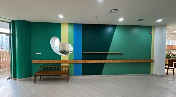 특히 다양한 자연의 색을 인공 색채로 재해석해 벽면에 구현하고, 나무와 풀잎 등 자연의 요소를 조화롭게 배치해 어르신들의 감각을 일깨우는 효과를 높였다.