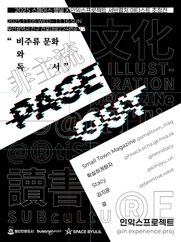 [아이뉴스24 박채오 기자] 부산 부산진구는 5일부터 오는 16일까지 스페이스 별일에서 서브컬처 아티스트 초청전 'PAGE OUT' 전(展)을 개최한다고 밝혔다.