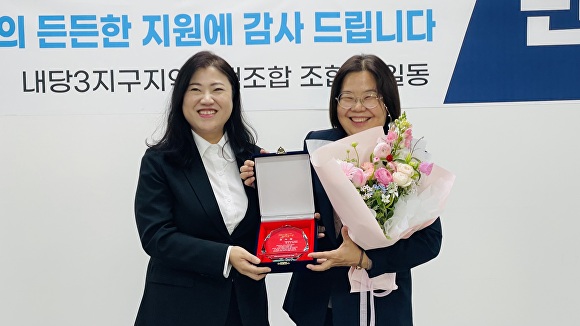 이번 전달식은 시공사와의 갈등으로 장기간 공사가 중단될 위기에 처했던 조합이, 더불어민주당 대구시당과 이연희 국회의원(청주 흥덕)의 적극적인 중재와 지원을 통해 무사히 입주를 완료하게 된 데 따른 감사의 뜻으로 마련됐다.