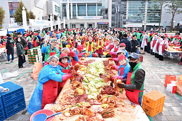 이날 행사에는 새마을협의회·부녀회 회원, 후원기관 임직원 등 500여 명이 참여해 절임배추 7920kg으로 김장김치를 직접 담갔다. 완성된 김치 1100박스는 저소득층, 홀몸 어르신, 취약계층 가정에 전달돼 지역사회에 따뜻한 온정을 전했다.