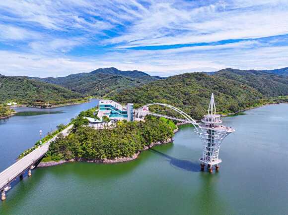 전망대에서 내려오면 호수 위를 걷는 듯한 감각을 느낄 수 있는 보행교가 이어져 칠갑호 맞은편까지 이동할 수 있다.