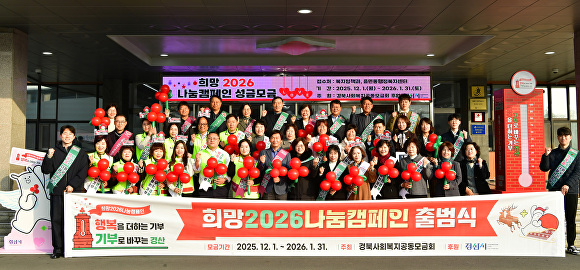 ‘희망 2026 나눔캠페인’은 2025년 12월 1일부터 2026년 1월 31일까지 진행되며, ‘행복을 더하는 기부, 기부로 바꾸는 경산’이라는 슬로건 아래 거리홍보, SNS 캠페인, QR 기부, 성금 접수창구 운영 등을 통해 시민들이 일상에서 쉽게 나눔을 실천할 수 있는 환경을 마련한다.