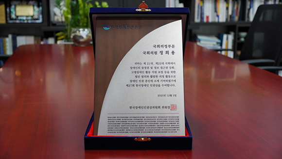 정희용 의원은 수상 소감에서 “장애인 단체와 지속적으로 소통하며 필요한 지원을 세심하게 챙겨왔다”며 “앞으로도 장애유형별 맞춤형 법안과 사업을 발굴하고, 장애인의 웃음이 가득한 사회를 만들겠다”고 밝혔다.
