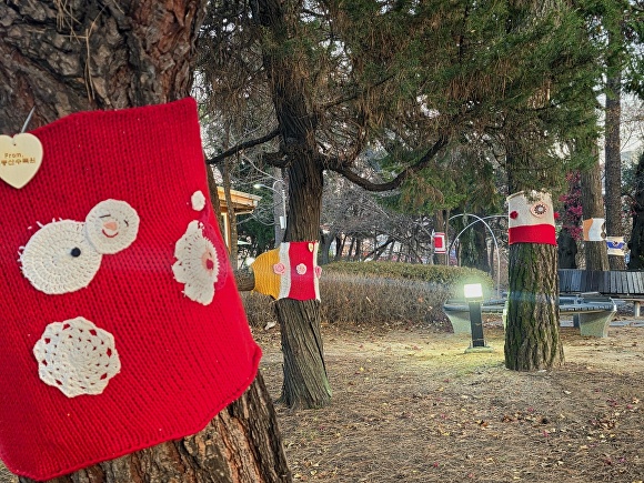 충북문화관은 숲속갤러리와 영유아 통합놀이공간 등 자연·문화·휴식이 공존하는 장소다. 실외 정원 주변 수목과 주요 진입 동선에 다채로운 뜨개 작품을 배치, 도심 겨울 풍경에 따뜻함과 감성을 더하고 방문객이 이동하거나 머무르는 과정에서 자연스럽게 작품을 접하도록 구성했다.
