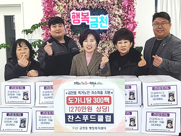 이 업체는 9일 청주시 상당구 금천동 행정복지센터(동장 풍수련)를 찾아, 독거노인 등 저소득 취약계층을 위해 써달라며 270만원 상당의 도가니탕 300팩을 기탁했다.