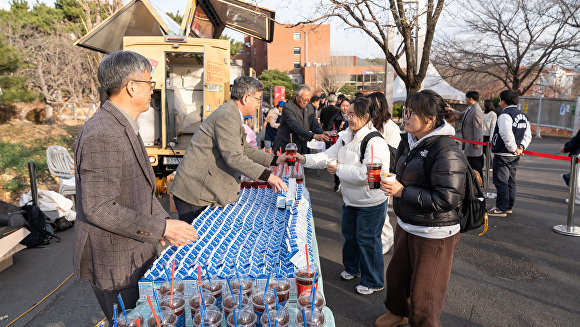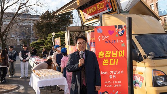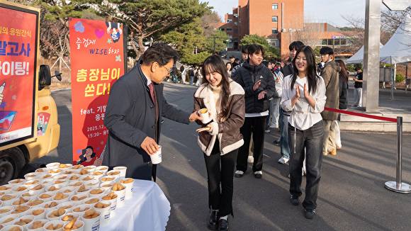 이날 행사에서 류완하 동국대 WISE캠퍼스 총장과 교무위원들이 기말고사 응원 간식으로 총 800명에게 붕어빵과 음료수를 나눠주며 응원의 메시지를 전했다.